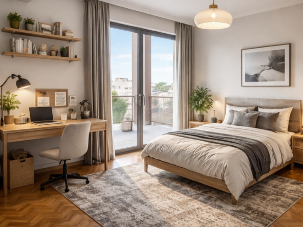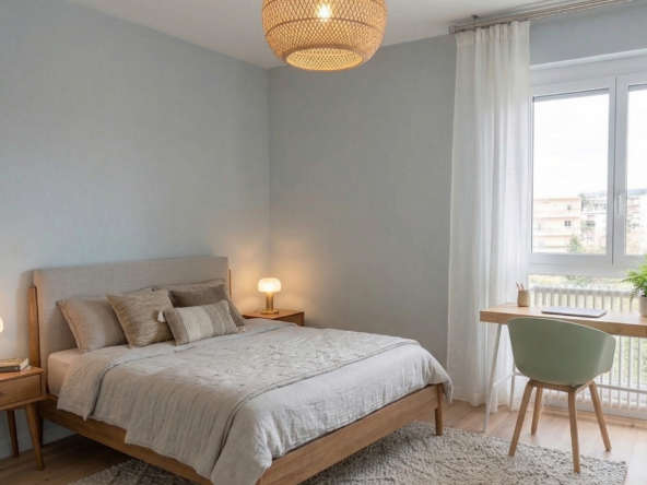 - La “Premium” (14 m²) + Balcon : La plus grande de la coloc. C’est quasiment un studio dans l’appart ! Un balcon et assez de place pour vraiment séparer le coin repos de l’espace bureau. Le confort ultime.