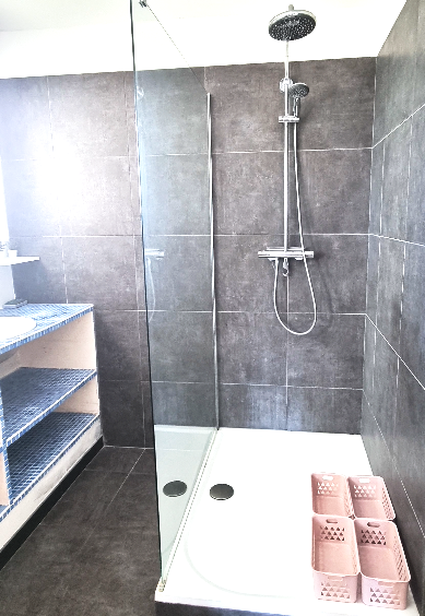 Chaque chambre ainsi que les espaces communs sont climatisés, offrant un confort optimal tout au long de l’année, parfait pour affronter les chaudes journées montpelliéraines. L’appartement dispose également d’une très grande salle de bain avec 2 vasques et une douche italienne, équipée de matériaux modernes et élégants pour un usage quotidien des plus agréables.